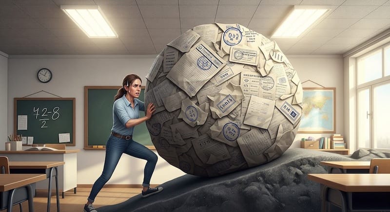 Her days begin not with lesson plans, but with a bizarre liturgy of nonsense. Before a single child has sharpened a pencil, she must appease the bureaucratic deities. Yesterday’s sacrifice involved a 'Behavioral Redirection Data-Point Form,' which had to be filled out in triplicate.